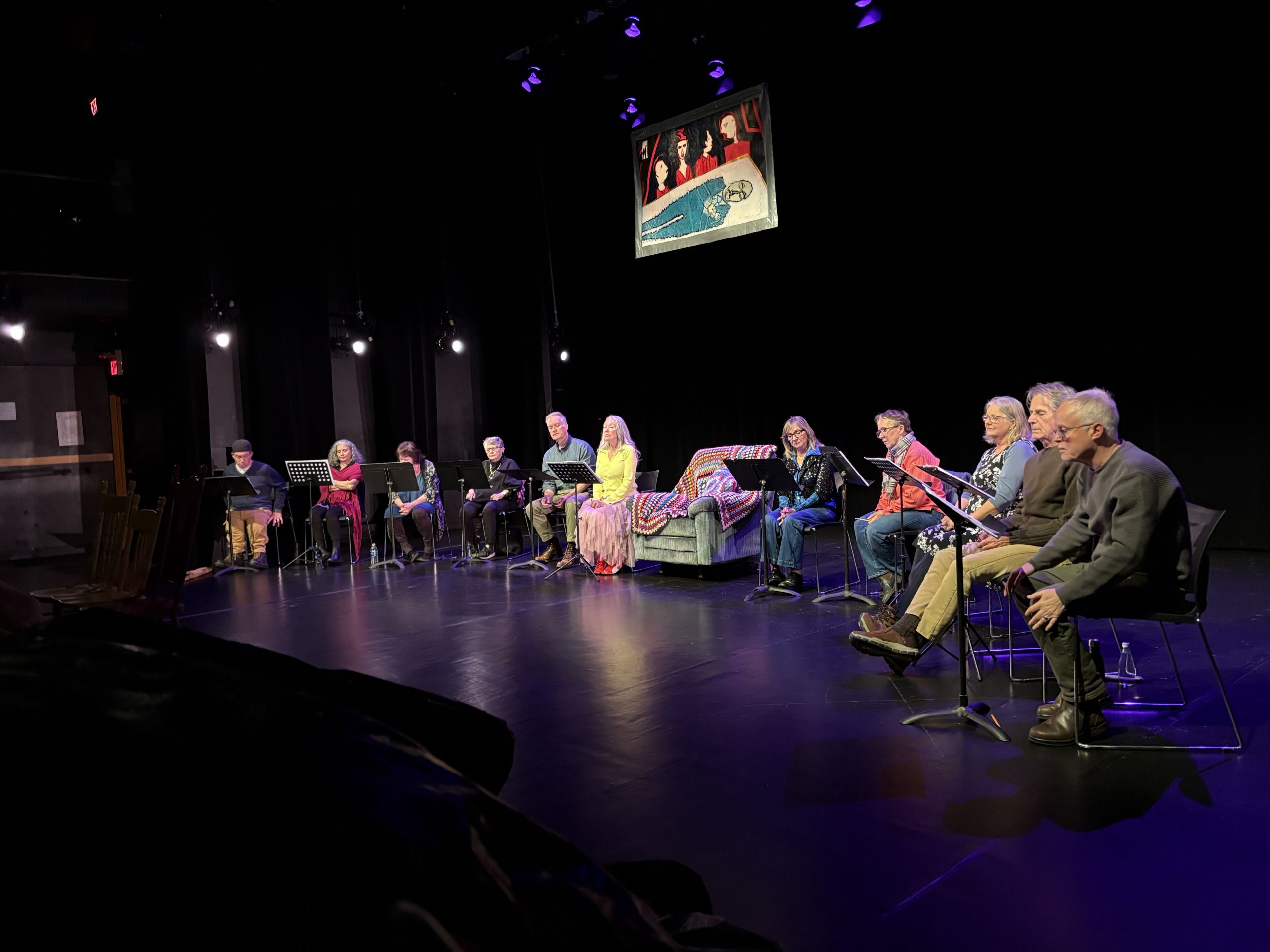 Were we planets, or are we Gods at last? That’s all of us here, you know, waiting to go, and gone. Bernardine Ann Teráz Stapleton loved writing those words as the inaugural playwright-in-residence for RCAT in 2025. Dying at the Discotheque assembled a stunning array of senior talent on the LSPU mainstage for the workshop/reading of this heart-rending, funny, nostalgic examination of aging and dying in the professional arts. The residency was also the inspiration for a new one-woman show Hysterical Vadge with a special excerpt to be read at the upcoming Women’s Work Festival. Bernardine likens her residency to being Miss Congeniality for a whole year, writing like a banshee buoyed with the support and encouragement of RCAT and the LSPU Hall, and the conversations and interactions with our community.